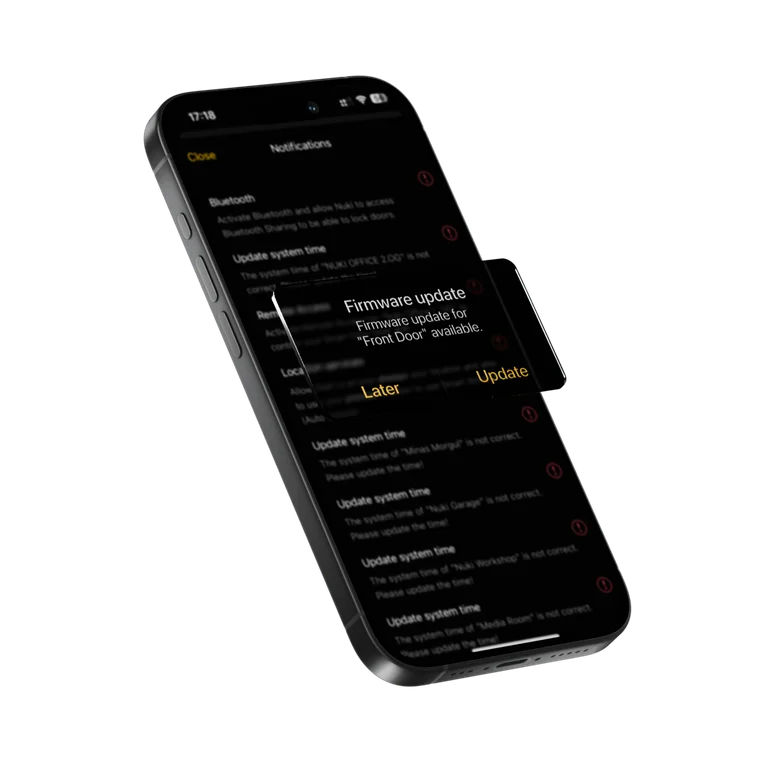 Ürünlerimizde en yüksek güvenlik standartlarını uygular ve sürekli olarak geliştiririz. Bu nedenle, Nuki cihazlarınızın ve Nuki Uygulamanızın yazılımının her zaman güncel olması özellikle önemlidir.
