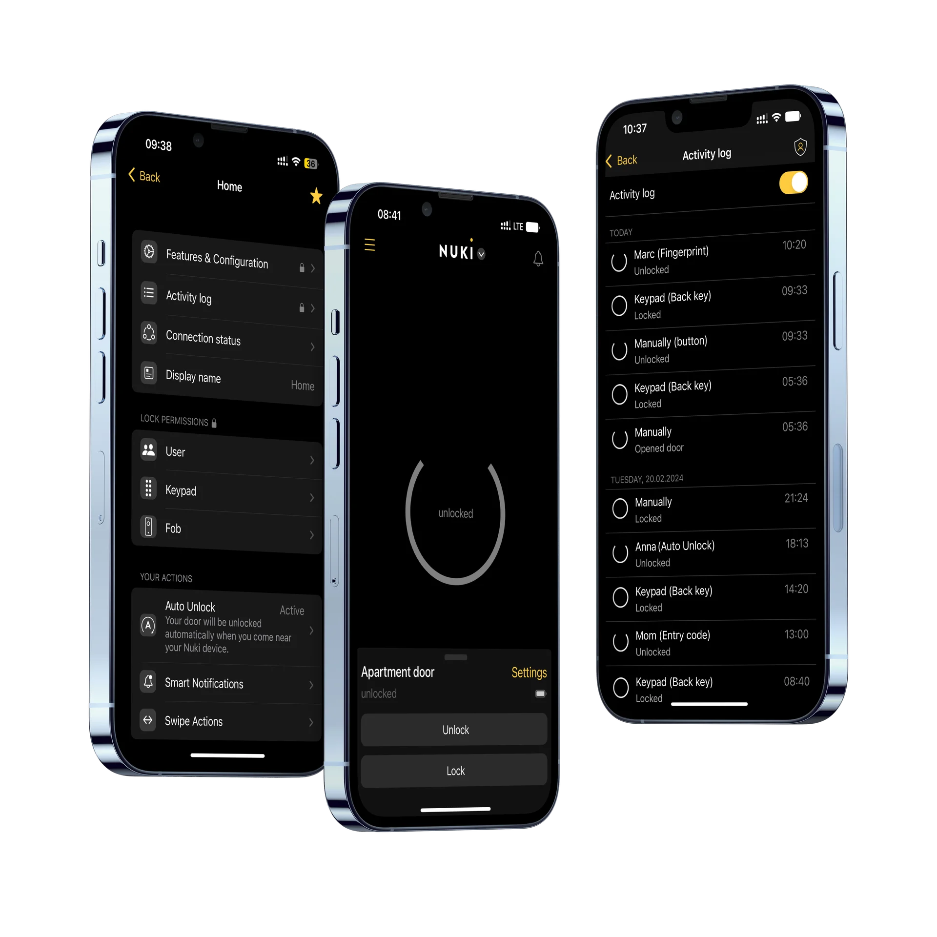 Akıllı Kilidi kilitlemek veya kilidini açmak için Nuki Uygulamasına ihtiyacınız yoktur. Nuki Keypad veya Nuki Fob gibi aksesuarlarımızı da kullanabilirsiniz. Akıllı Kilidi Nuki Web veya Nuki Uygulaması üzerinden yönetebilirsiniz. Ancak, kalibrasyon gibi belirli işlemler ve ilk kurulum için her zaman Nuki Uygulaması kurulu bir akıllı telefona ihtiyacınız olacaktır.